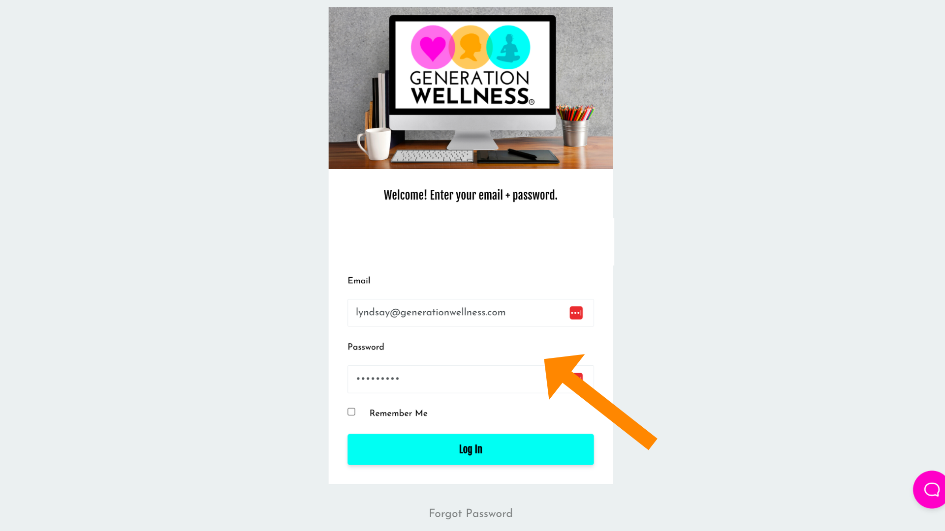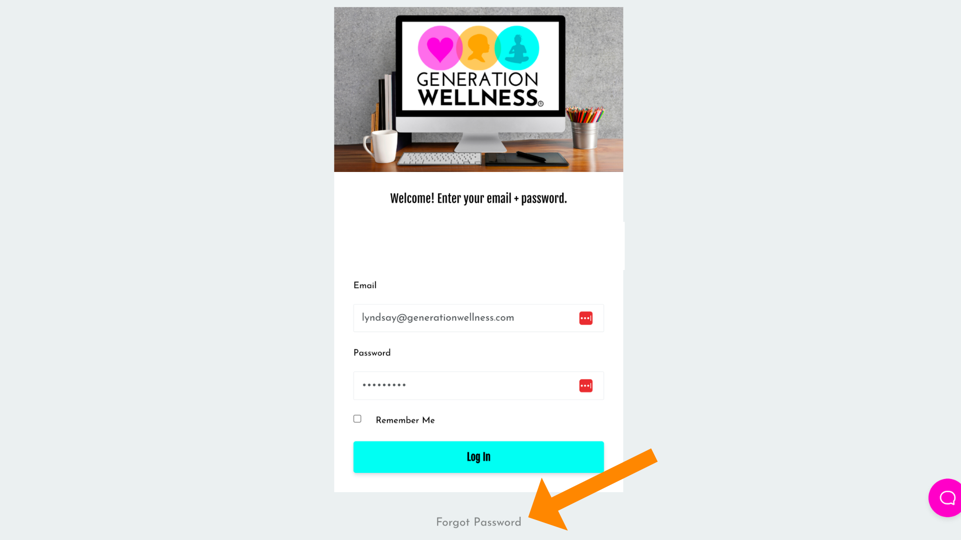 Step 7: Once you have recovered your password. Go to generationwellness.com/login and enter your email and password.